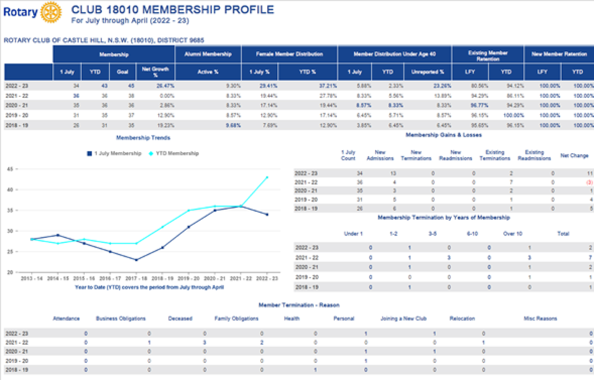 Club membership profile provides an accurate picture of a club’s membership in a historical perspective. It provides: